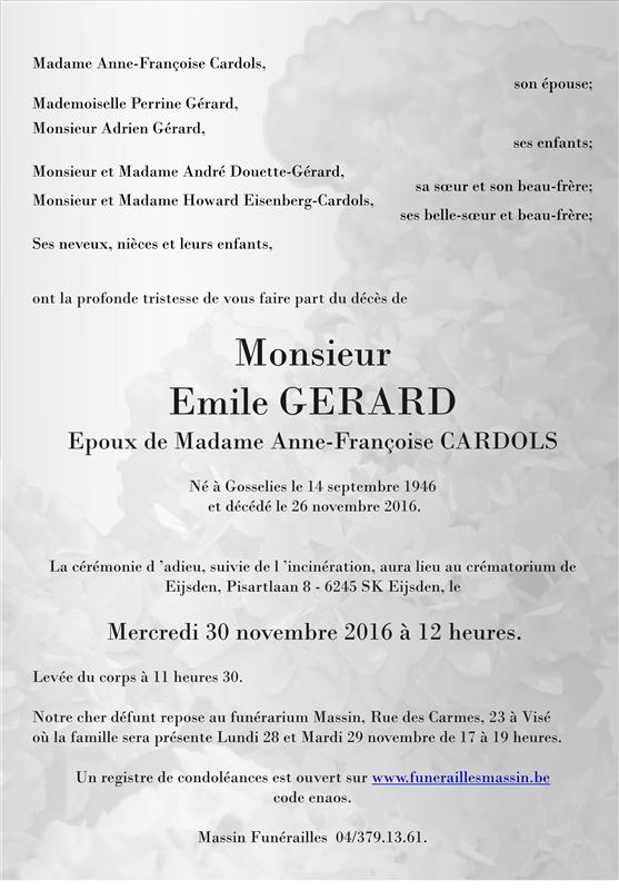 Décédé à Hermalle-sous-Argenteau (4681) le samedi 26 novembre 2016 à l'âge de 70 ans