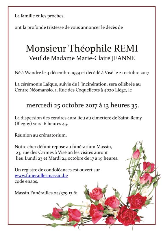 Décédé à Visé (4600) le samedi 21 octobre 2017 à l'âge de 77 ans