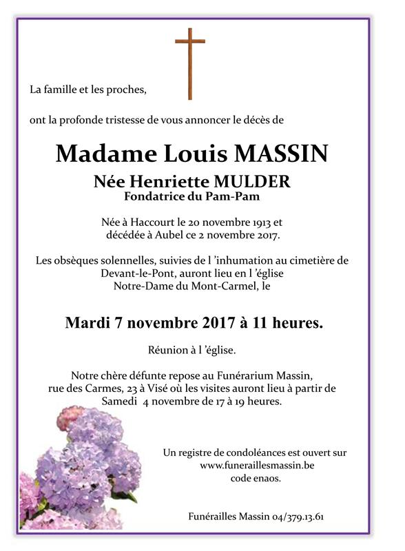 Décédée à Aubel (4880) le jeudi 2 novembre 2017 à l'âge de 103 ans