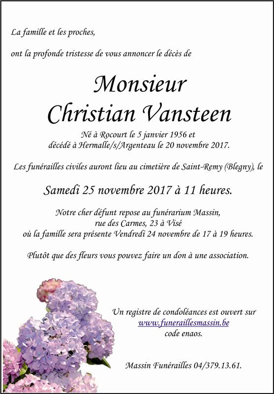 Décédé à Hermalle-sous-Argenteau (4681) le lundi 20 novembre 2017 à l'âge de 61 ans