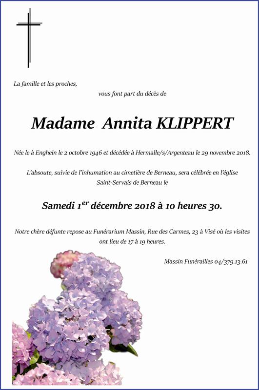 Décédée à Hermalle-sous-Argenteau (4681) le jeudi 29 novembre 2018 à l'âge de 72 ans