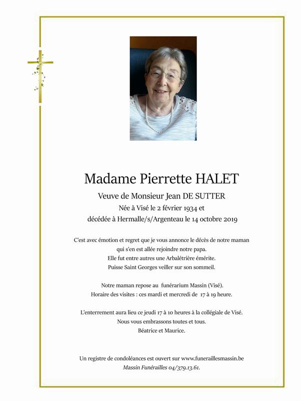 Décédée à Oupeye (4680) le lundi 14 octobre 2019 à l'âge de 85 ans