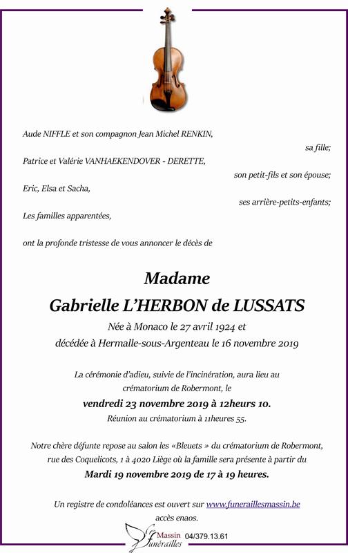 Décédée à Hermalle-sous-Argenteau (4681) le samedi 16 novembre 2019 à l'âge de 95 ans