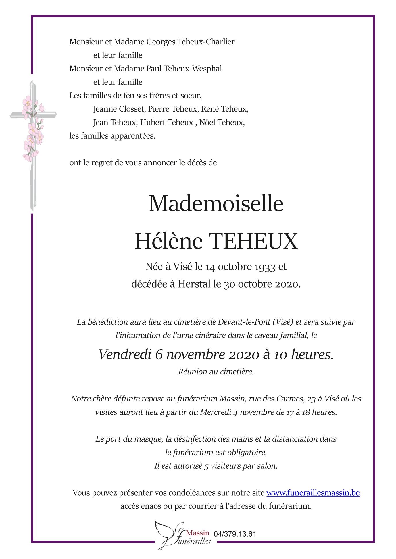 Décédé à Herstal (4040) le vendredi 30 octobre 2020 à l'âge de 87 ans