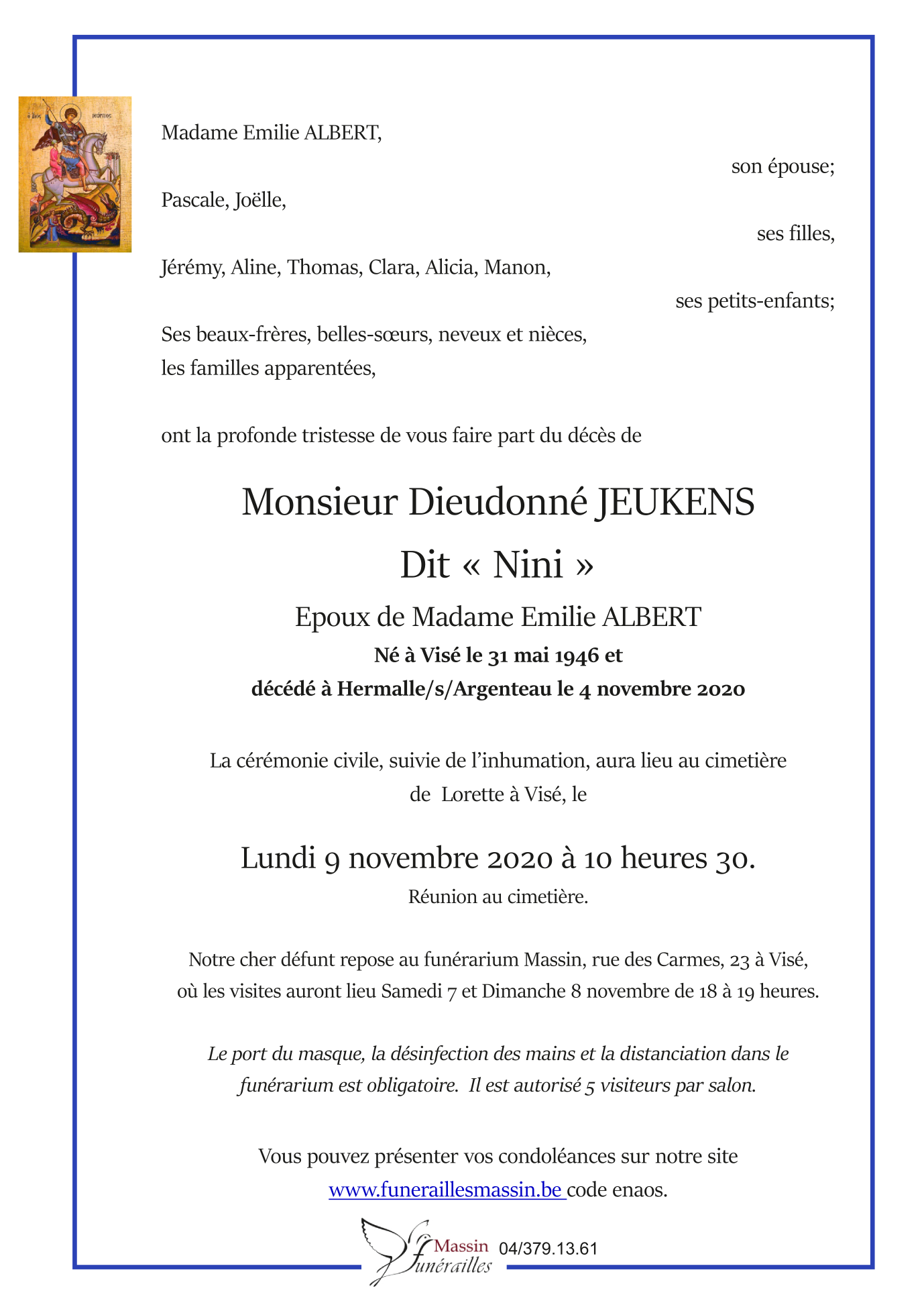 Décédé à Hermalle-sous-Argenteau (4681) le mercredi 4 novembre 2020 à l'âge de 74 ans