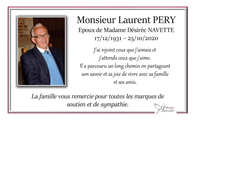 Décédé à Herstal (4040) le dimanche 25 octobre 2020 à l'âge de 88 ans