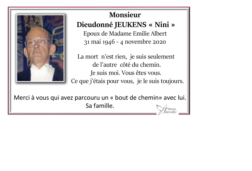 Décédé à Hermalle-sous-Argenteau (4681) le mercredi 4 novembre 2020 à l'âge de 74 ans
