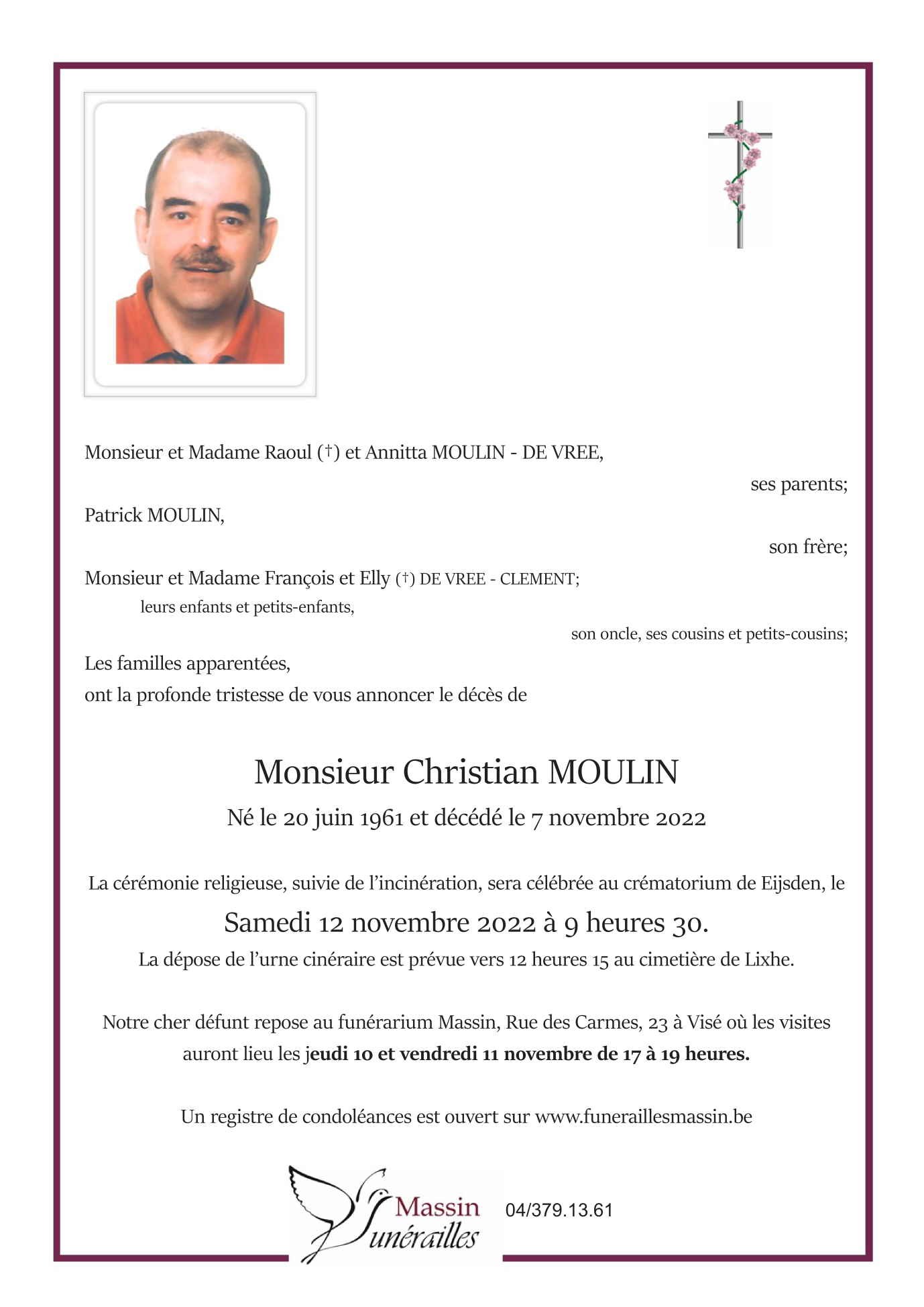 Décédé à Hermalle-sous-Argenteau (4681) le lundi 7 novembre 2022 à l'âge de 61 ans