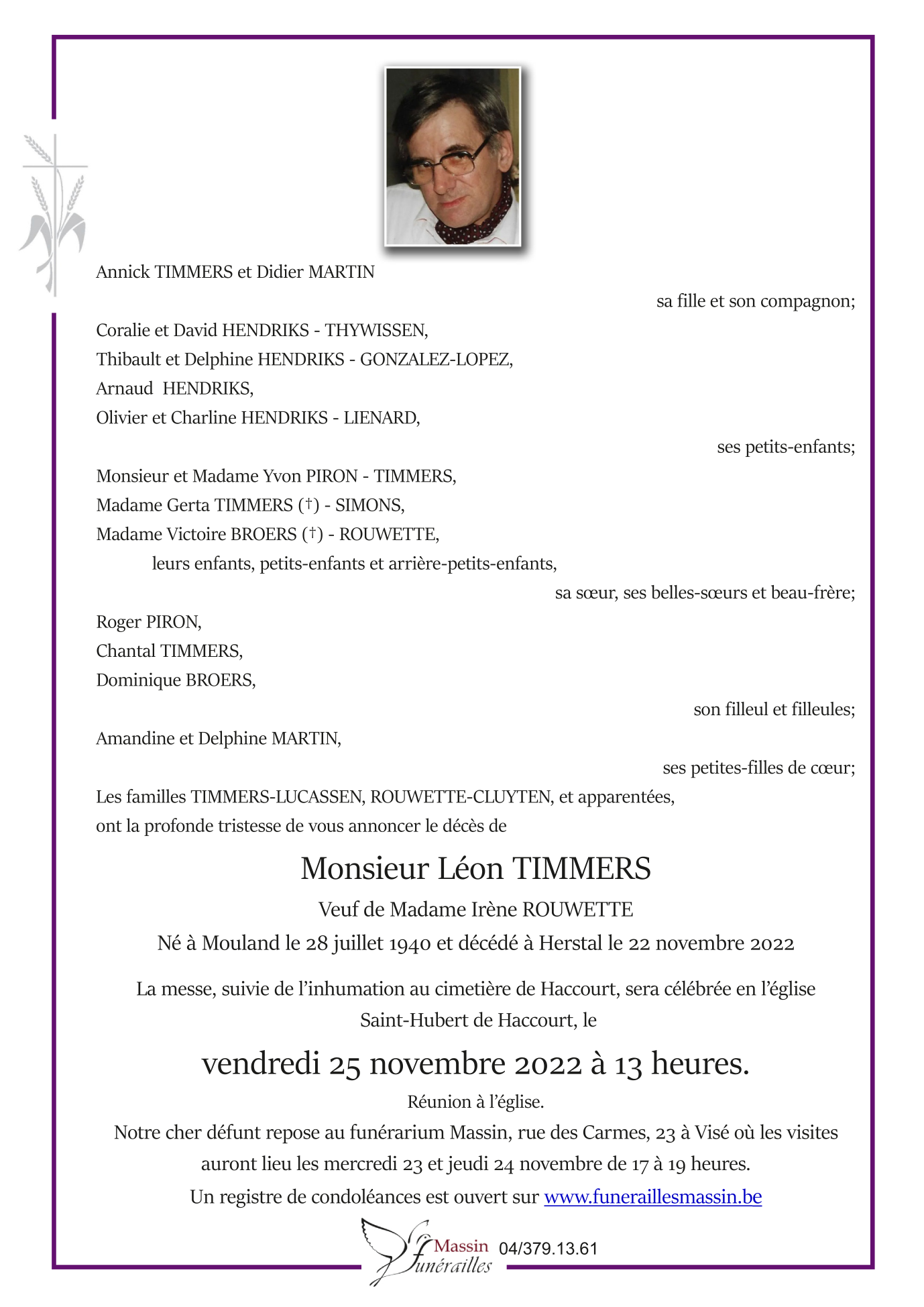 Décédé à Herstal (4040) le mardi 22 novembre 2022 à l'âge de 82 ans
