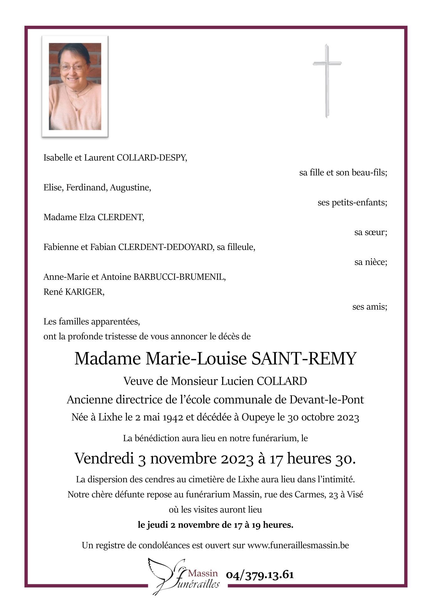 Madame Marie-Louise COLLARD née SAINT-REMY