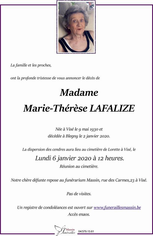 Décédée à Blegny (4670) le jeudi 2 janvier 2020 à l'âge de 89 ans