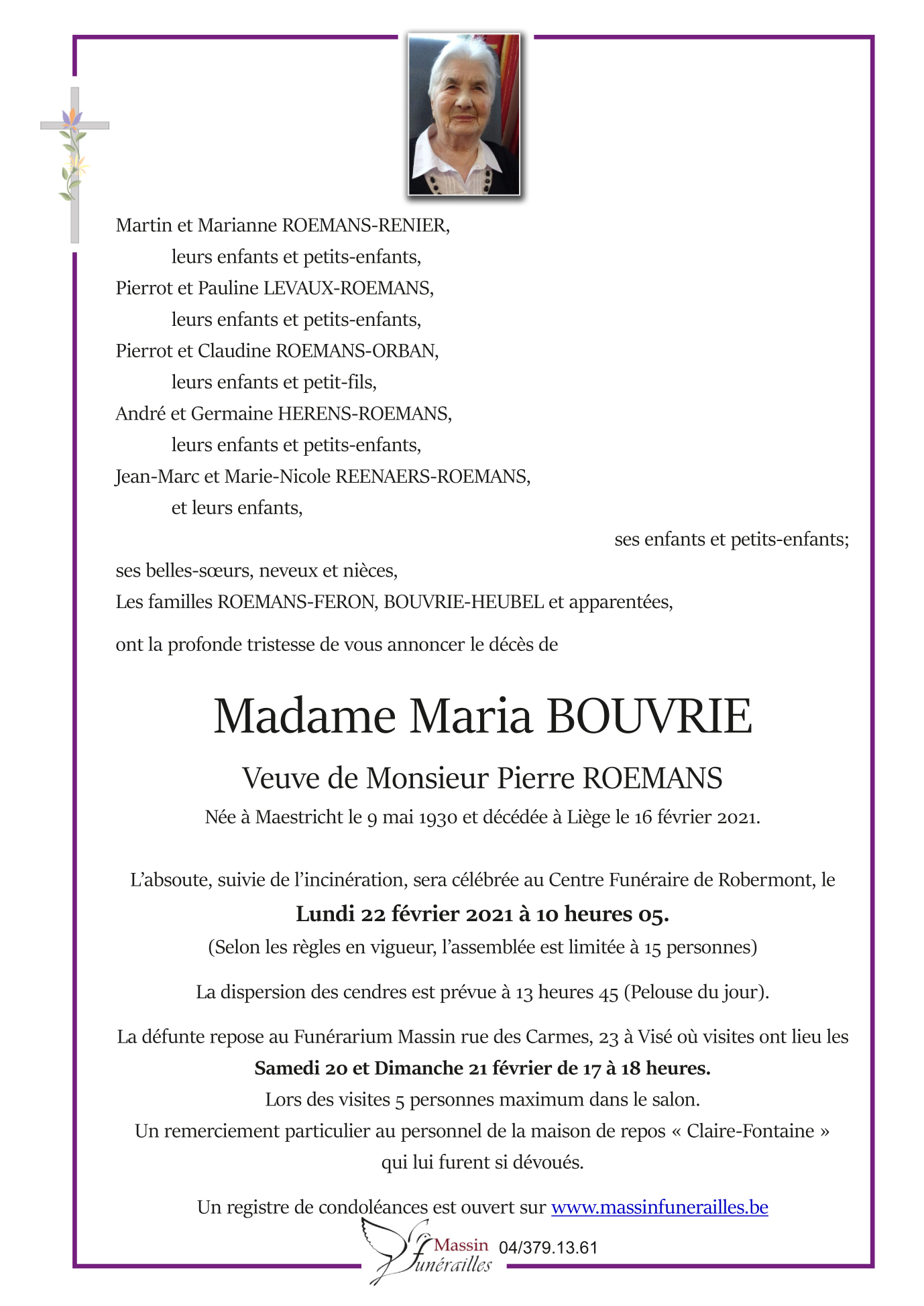 Madame Maria BOUVRIE