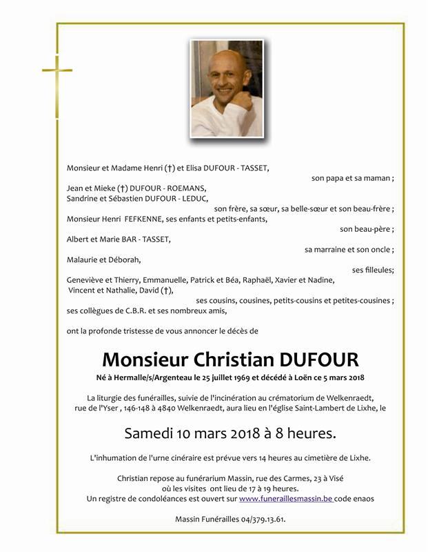 Décédé à Lixhe (4600) le lundi 5 mars 2018 à l'âge de 48 ans