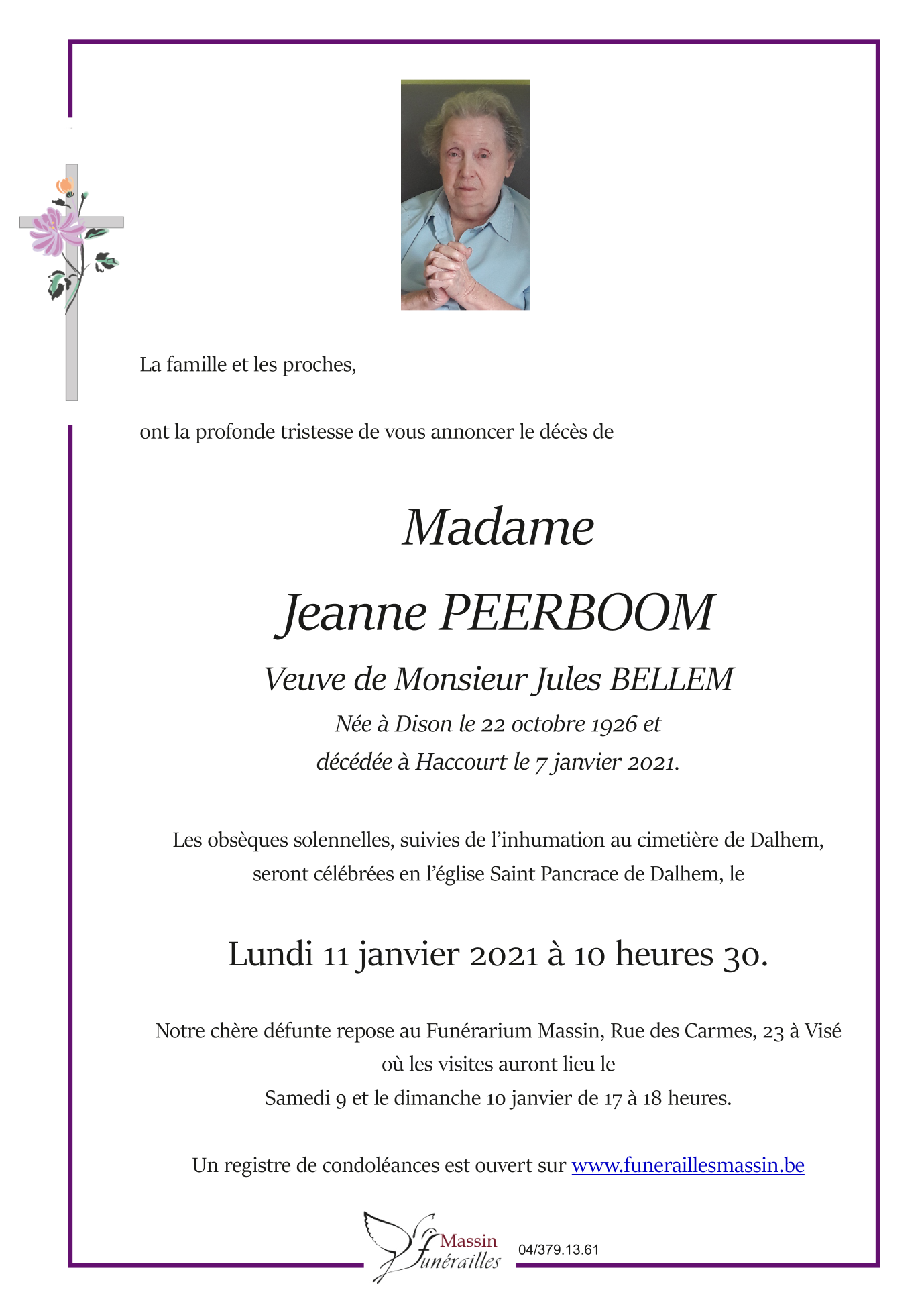 Madame Jeanne PEERBOOM