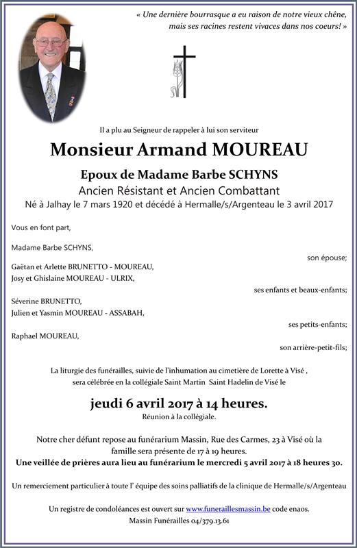 Décédé à Hermalle-sous-Argenteau (4681) le lundi 3 avril 2017 à l'âge de 97 ans