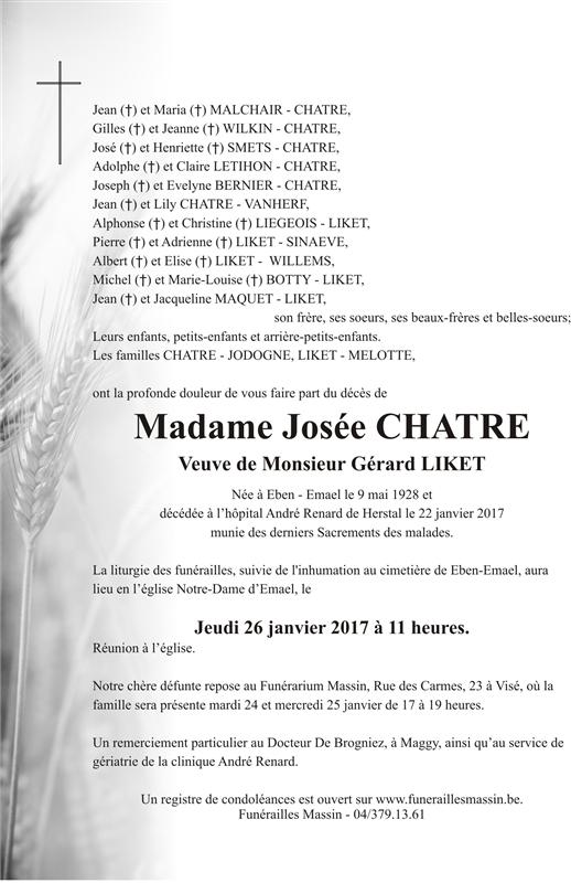 Décédée à Herstal (4040) le dimanche 22 janvier 2017 à l'âge de 88 ans
