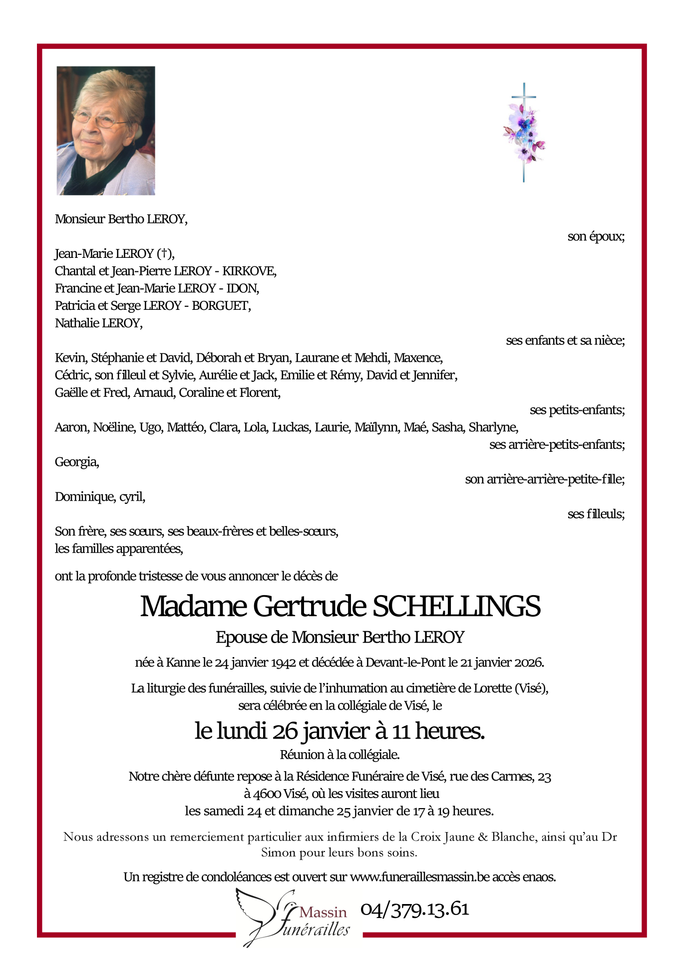 Madame Gertrude SCHELLINGS Eps Bertho LEROY