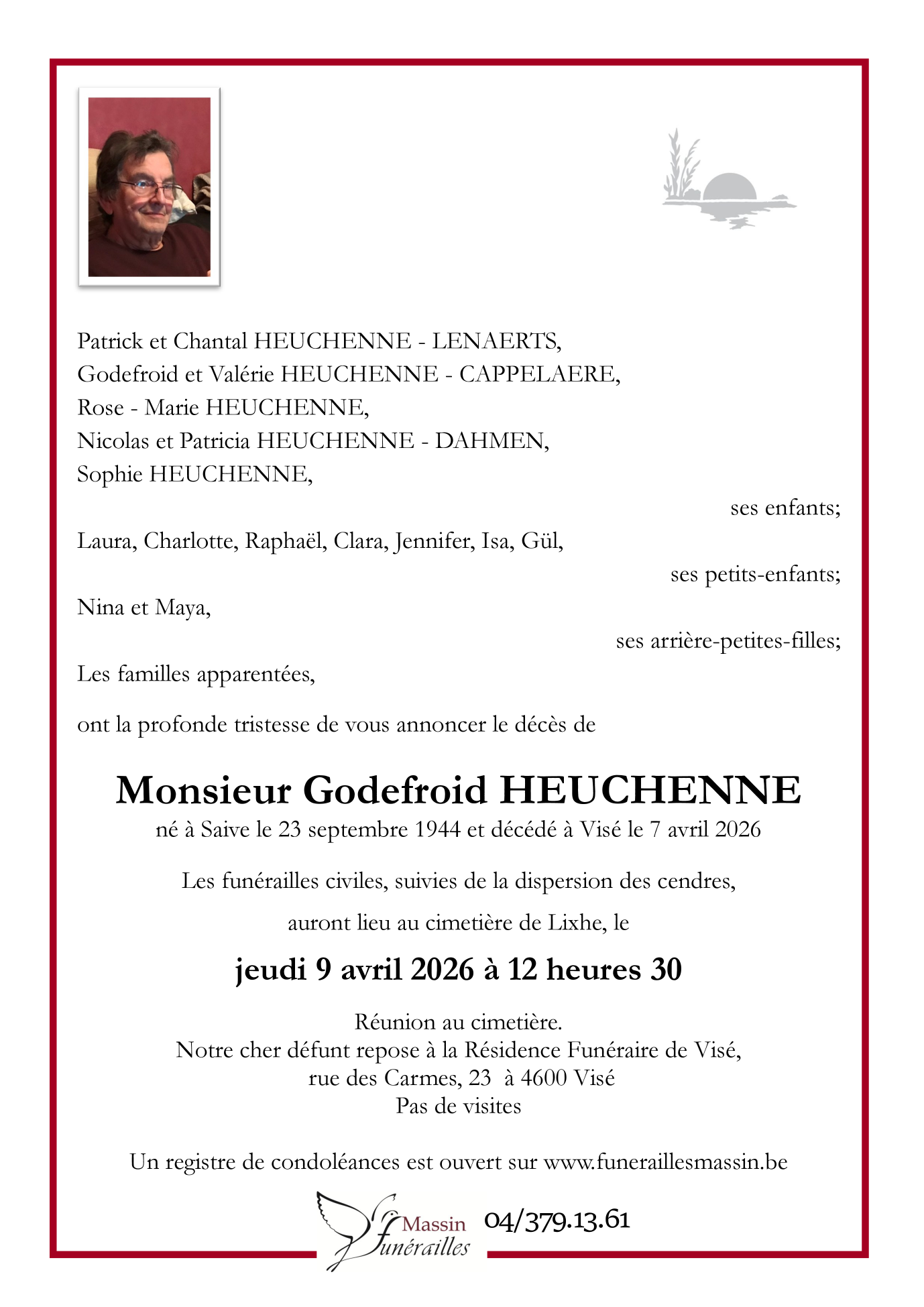 Décédé à Visé (4600) le mardi 7 avril 2026 à l'âge de 81 ans