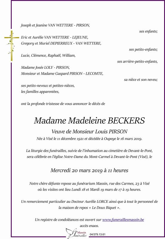 Madame Madeleine PIRSON née BECKERS