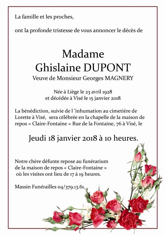 Décédée à Visé (4600) le dimanche 14 janvier 2018 à l'âge de 89 ans