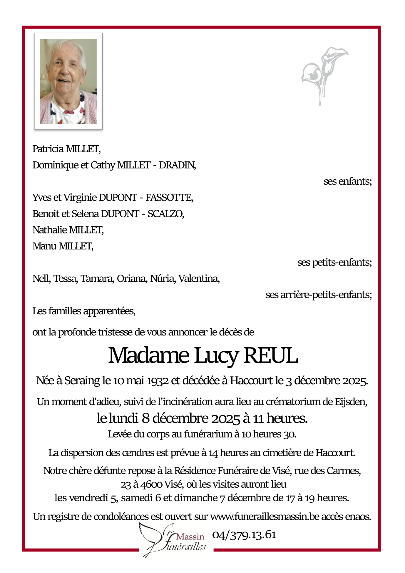 Décédée à Haccourt (4684) le mercredi 3 décembre 2025 à l'âge de 93 ans