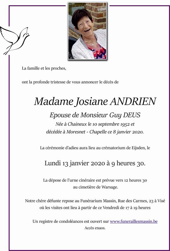 Madame Josiane ANDRIEN Epouse Guy DEUS