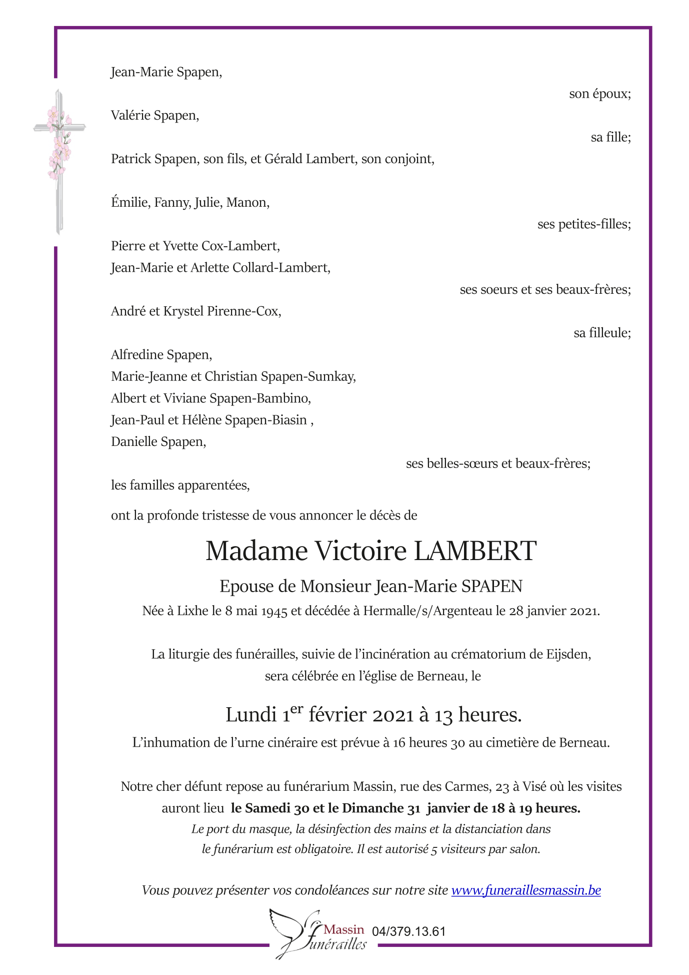 Décédée à Hermalle-sous-Argenteau (4681) le jeudi 28 janvier 2021 à l'âge de 75 ans