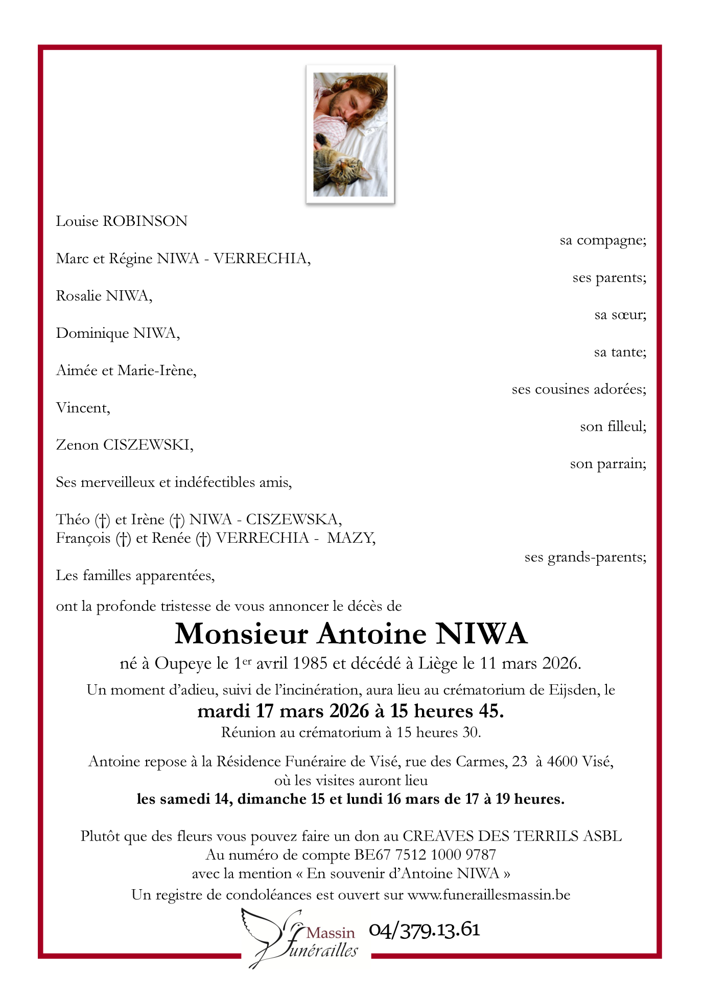 Décédé à Liège (4000) le mercredi 11 mars 2026 à l'âge de 40 ans