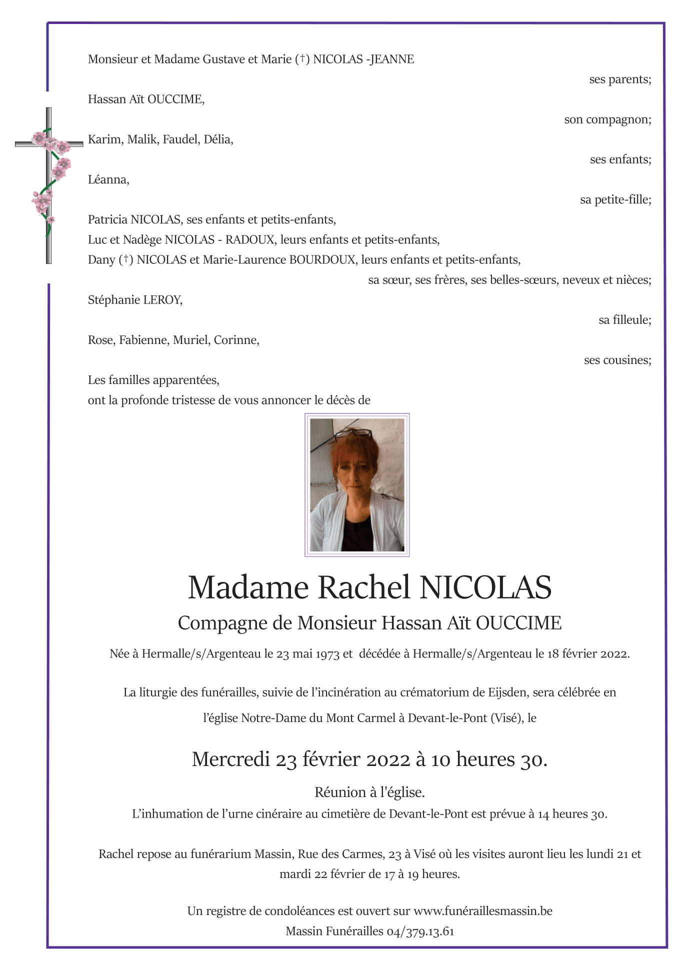 Décédée à Hermalle-sous-Argenteau (4681) le vendredi 18 février 2022 à l'âge de 48 ans