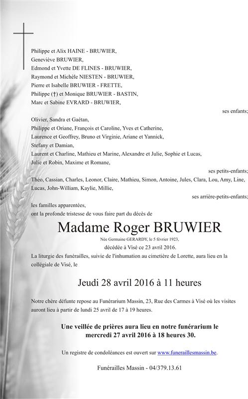Veuve de Monsieur Roger BRUWIER