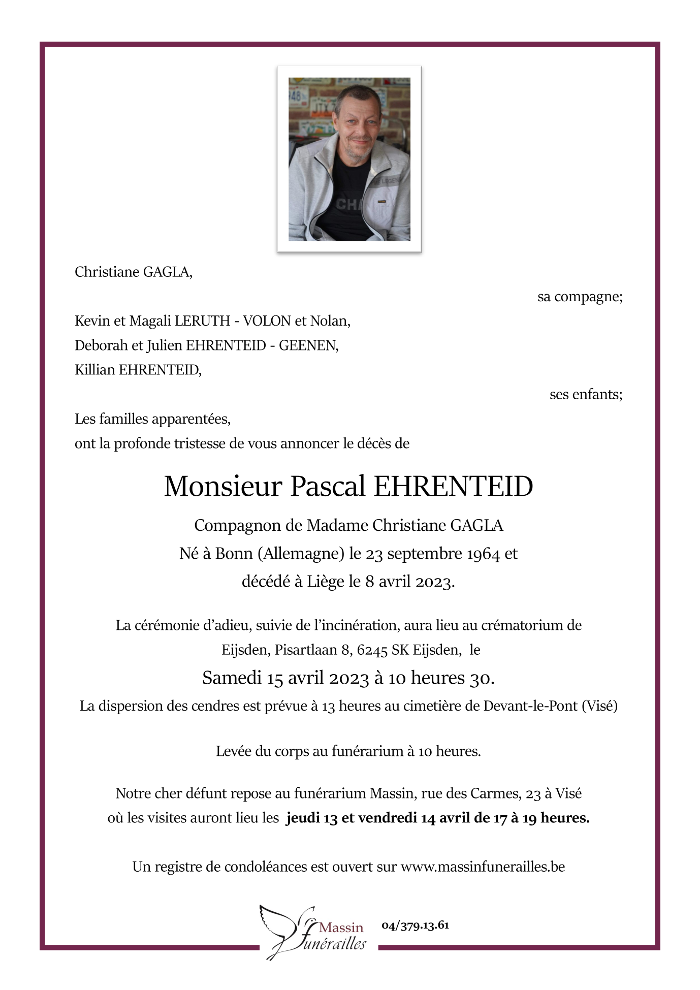 Décédé à Liège (4000) le dimanche 9 avril 2023 à l'âge de 58 ans
