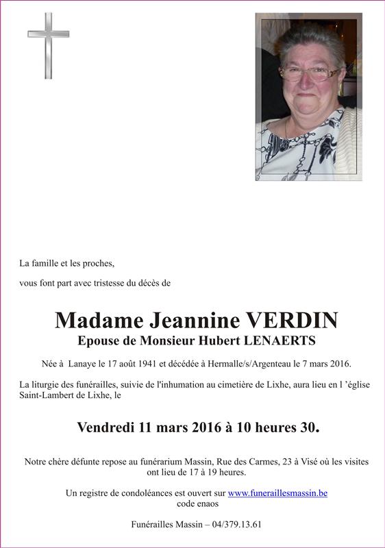 Madame Jeannine LENAERTS née VERDIN